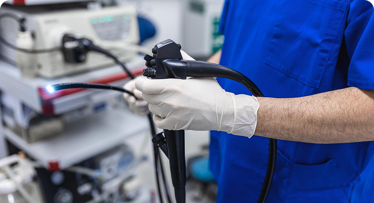 A fully equipped endoscopy suite provides diagnostic and therapeutic upper GI endoscopy and colonoscopy, including variceal ligation, ulcer hemostasis, polypectomy, foreign body retrieval, and stenting where indicated, enabling rapid diagnosis and minimally invasive intervention for acute and chronic GI conditions. Endoscopy workflows are integrated with anesthesia, pathology, and radiology to ensure timely biopsy, staging, and treatment planning for GI malignancies and complex benign disease.