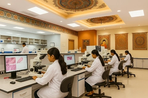 Sri Muthukumaran Medical College Hospital & Research Institute (SMMCHRI) offers a comprehensive academic framework with well-established pre-clinical departments including Anatomy, Physiology, and Biochemistry; para-clinical departments such as Pharmacology, Pathology, Microbiology, Forensic Medicine, and Community Medicine; and a wide array of clinical departments encompassing General Medicine, General Surgery, Paediatrics, Obstetrics & Gynaecology, Orthopaedics, Anaesthesiology, Dermatology, Psychiatry, Radiology, ENT, Ophthalmology, Emergency Medicine, and Respiratory Medicine. Each department is equipped with modern infrastructure and staffed by experienced faculty dedicated to delivering high-quality teaching, providing extensive clinical exposure, fostering research initiatives, and ensuring comprehensive patient care— thereby nurturing the holistic development of competent, skilled, and ethical medical professionals aligned with global standards.