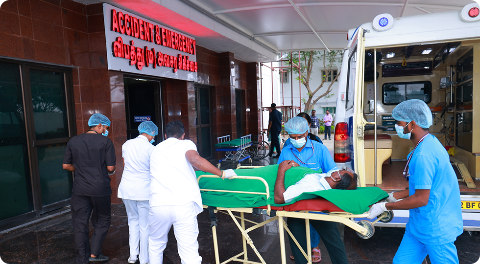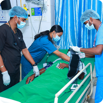 With state-of-the-art infrastructure and advanced monitoring systems, the department ensures rapid assessment, resuscitation, stabilization, and management of patients presenting with life-threatening conditions. The trauma care division is fully prepared to handle all forms of blunt and penetrating injuries, road traffic accidents, industrial trauma, and polytrauma cases through a systematic, evidence-based approach.